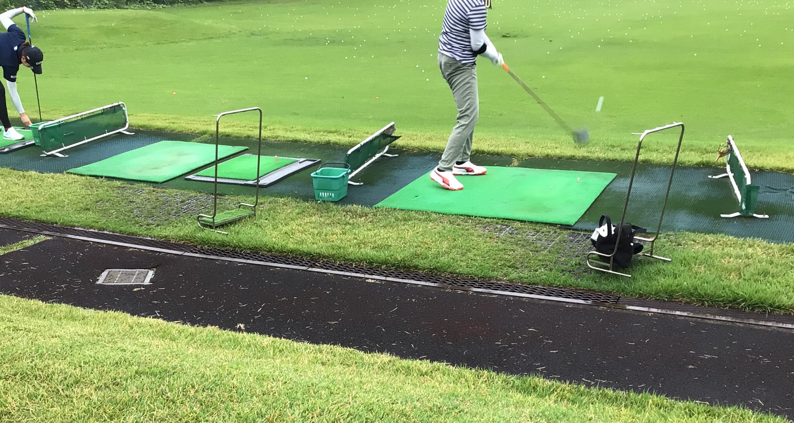 芝生からのショット練習