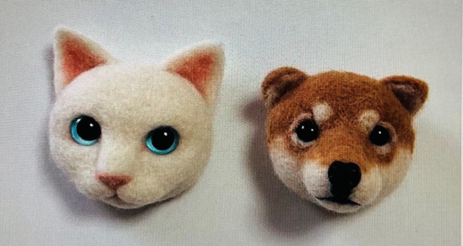 私が作ったキットに羊毛で色を貼り付ける作業をして柴犬ブローチか白猫ブローチを完成させます
