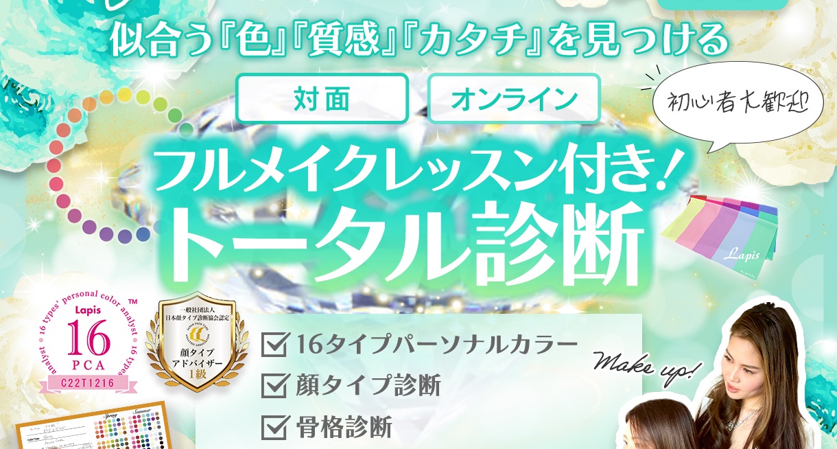 ビューティコンテストのスペシャリスト講師として、パーソナルカラー、骨格、顔タイプ、メイクアップを指導させていただきました。