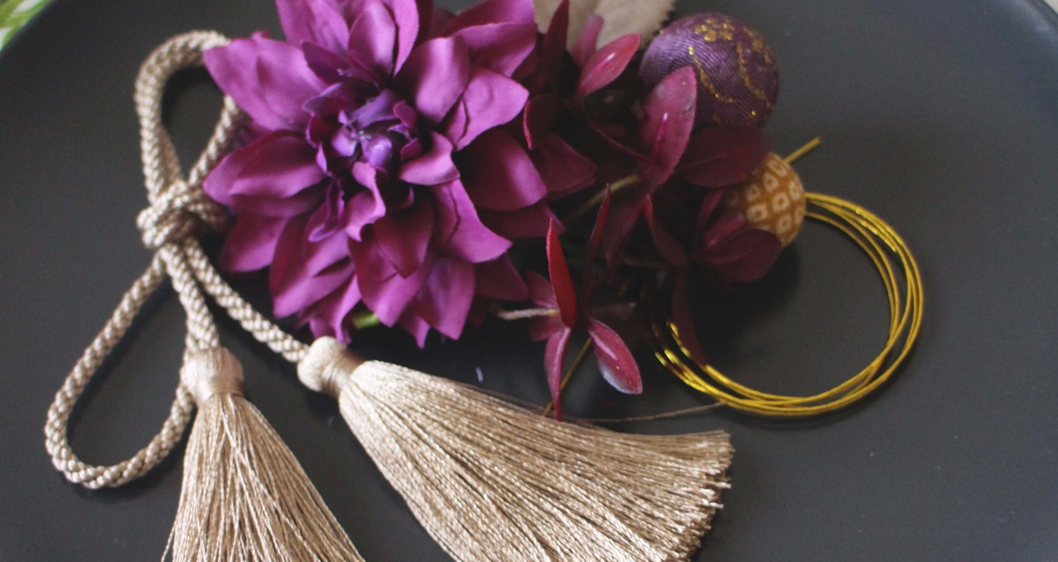 花、葉、リボン、タッセル、和紐をご用意いたします。